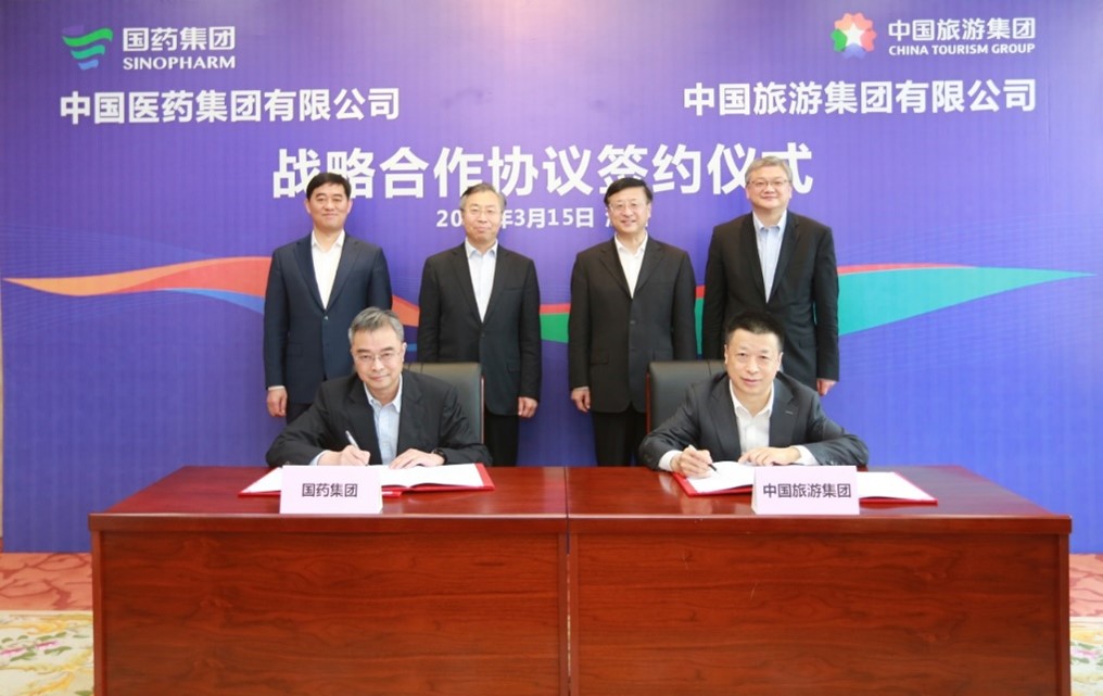 3月15日,集團與國藥集團在深圳簽署戰(zhàn)略合作協(xié)議,雙方旗下中國旅游集團中免股份有限公司與中國國際醫(yī)藥衛(wèi)生有限公司簽署股權(quán)合作協(xié)議。集團董事長陳寅,總經(jīng)理王海民;國藥集團董事長劉敬楨,副總經(jīng)理胡建偉、董增賀、晉斌出席簽約儀式并見證簽約。集團副總經(jīng)理、中國中免董事長李剛與國藥集團副總經(jīng)理鄧金棟分別代表雙方簽署戰(zhàn)略合作協(xié)議,中國中免總經(jīng)理王軒與國藥國際總經(jīng)理周頌分別代表雙方簽署股權(quán)合作協(xié)議。