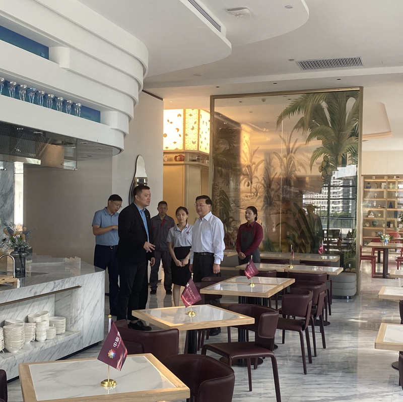 在中秋、國慶“雙節(jié)”將至的9月28日,海口免稅城睿景酒店喜迎開業(yè)。9月29日中秋節(jié)當(dāng)天,集團(tuán)陳寅董事長赴??诿舛惓穷>熬频昕疾煺{(diào)研。