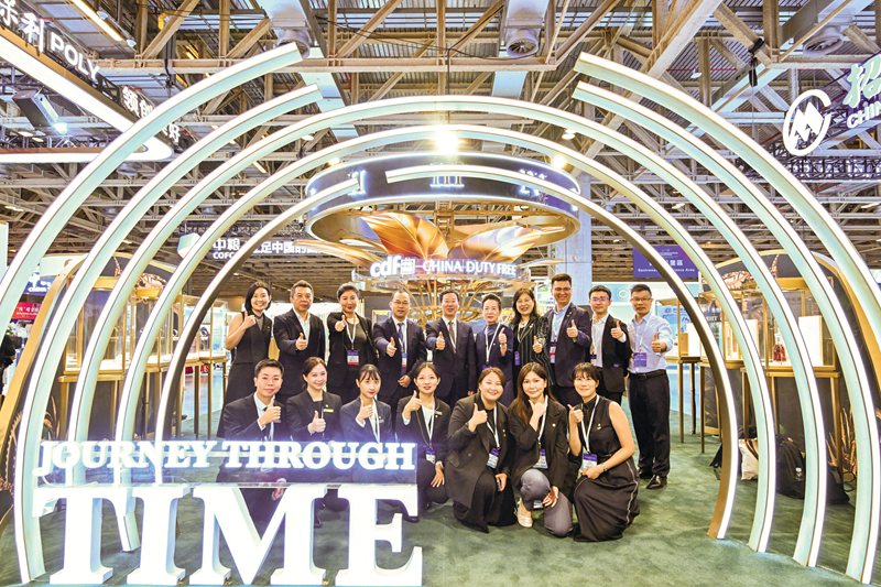 展臺(tái)占地80平米,劃分珍貴腕表區(qū)、時(shí)尚配搭區(qū)和珠寶區(qū)三大區(qū)域,以綠金色為主色調(diào),呈獻(xiàn)多款時(shí)尚名表及首飾,展臺(tái)入口組成發(fā)光隧道,讓參觀者仿佛踏上一場(chǎng)時(shí)光之旅,全面飽覽中免多款經(jīng)典腕表品牌。中免國(guó)際充分利用高品會(huì)這一國(guó)際交流平臺(tái),與受眾共同探索腕表品牌的無(wú)限可能性,提升集團(tuán)境外品牌知名度,鏈接更多海內(nèi)外潛在合作伙伴,為集團(tuán)業(yè)務(wù)發(fā)展開(kāi)拓新契機(jī)、注入新活力。