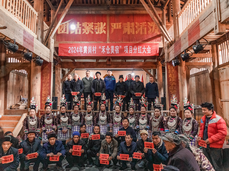 1月20日,集團(tuán)定點(diǎn)幫扶項(xiàng)目“禾倉(cāng)美宿”2024年分紅大會(huì)在貴州省黎平縣黃崗村舉辦。此次分紅總額達(dá)18萬(wàn)元,惠及全村365戶1800余名村民,分紅大會(huì)現(xiàn)場(chǎng)熱鬧非凡,村民們歡聚一堂,共享村集體經(jīng)濟(jì)發(fā)展帶來(lái)的紅利。其中,一般農(nóng)戶每戶分紅400元,優(yōu)秀黨員、優(yōu)秀寨老、困難黨員等獲發(fā)激勵(lì)獎(jiǎng);村級(jí)集體經(jīng)濟(jì)分紅51200元,用于黃崗村日常運(yùn)營(yíng)管理經(jīng)費(fèi)、鼓樓保護(hù)、教育發(fā)展等。