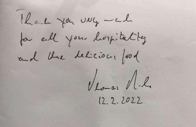 2月12日中午,國(guó)際奧委會(huì)主席巴赫到訪張家口冬奧村,在運(yùn)動(dòng)員餐廳就餐,并與部分運(yùn)動(dòng)員進(jìn)行了交流。午餐過后,巴赫主席特別留言點(diǎn)贊張家口冬奧村的餐飲服務(wù)。