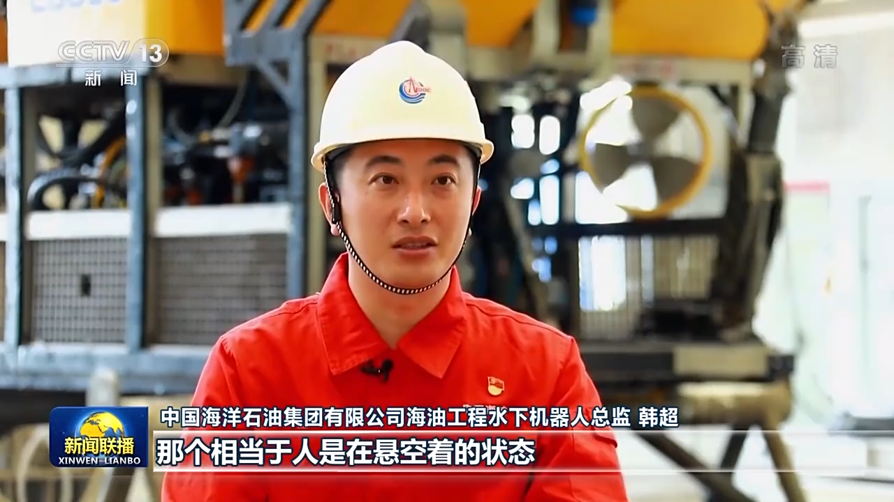 中國海洋石油集團有限公司海油工程水下機器人總監(jiān) 韓超:水下面是有水流的,不像我們在陸地。陸地上你有支撐,那個相當(dāng)于人是在懸空著的狀態(tài)。